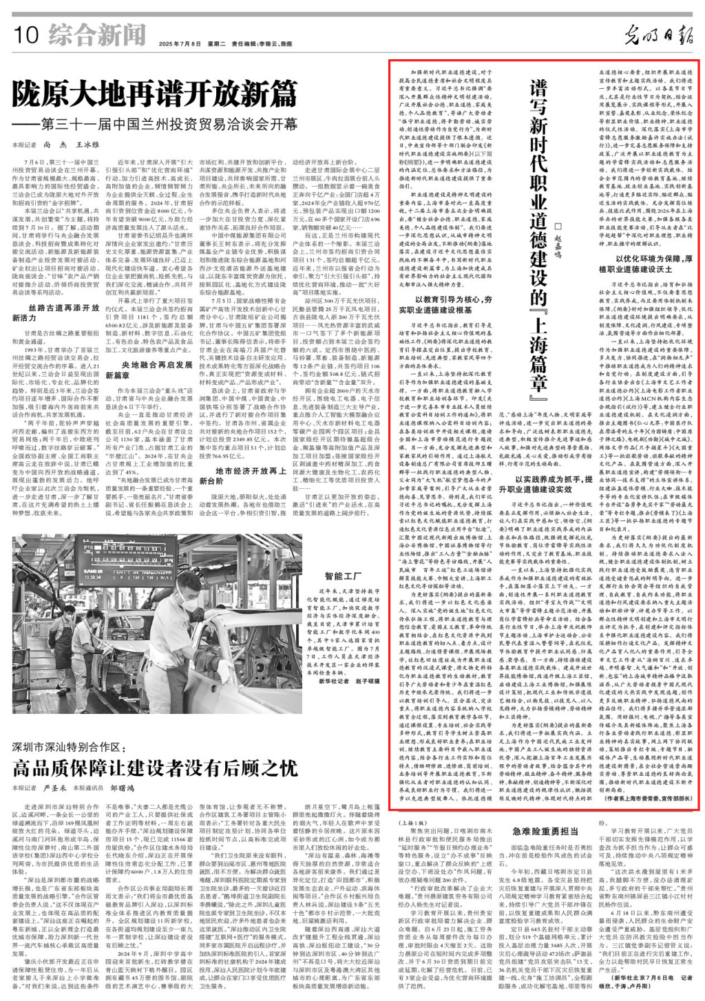 一直以来,上海坚持把优化环境作为加强职业道德建设的重要保障,多点发力、协同推进,在“润物细无声”中推动职业道德成为人们的精神追求和自觉行动。在制度建设方面,引导各行业协会出台《上海市文艺工作者职业道德公约》《上海电影工作者职业道德公约》《上海MCN机构内容生态合规指引(试行)》等,建立健全行业职业道德建设机制。在文化浸润方面,推出主题图书《仁心无界:中国医疗队在摩洛哥的五十年》《为国铸盾:中国原子弹之路》、电视剧《功勋》《城中之城》、网络文学作品《只手摘星斗》《大国重工》等一批讴歌劳动、讴歌奉献的精神文化产品。在氛围营造方面,深入开展职业道德宣讲,构建“劳模领衔—专业协同—技术支撑”的立体宣讲体系,组建涵盖退休劳模、行业大咖、技术能手等的专业化宣讲队伍;在市级媒体平台开设“奋勇争先实干家”“劳动最光荣”等专栏专题,推出《劳模来了》《上海工匠》等一批弘扬职业道德的专题节目和纪录片。