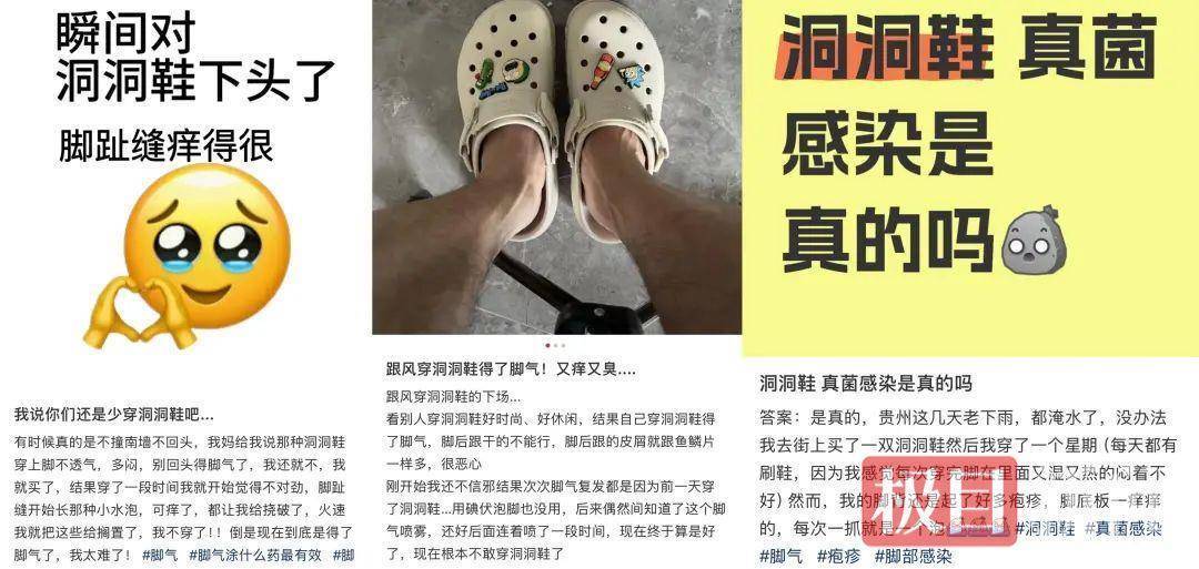 “穿洞洞鞋不到一周,脚趾缝又痒又脱皮!”“以为洞洞鞋透气就不会闷脚,结果脚气找上门……”社交平台上,不少网友分享自己的经历。有网友表示:“原本以为洞洞鞋的镂空设计能保持脚部干爽,没想到连续穿着3天后,足部就出现瘙痒、脱皮等症状,就医后被诊断为真菌感染引发的脚气。”